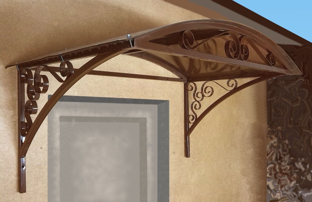 Окрашен порошковой краской. Крыша изготовлена из поликарбоната кофейного цвета толщиной 4 миллиметра.