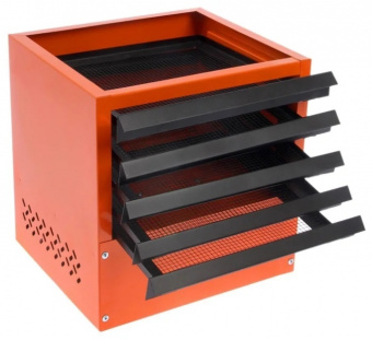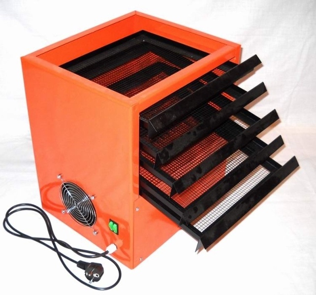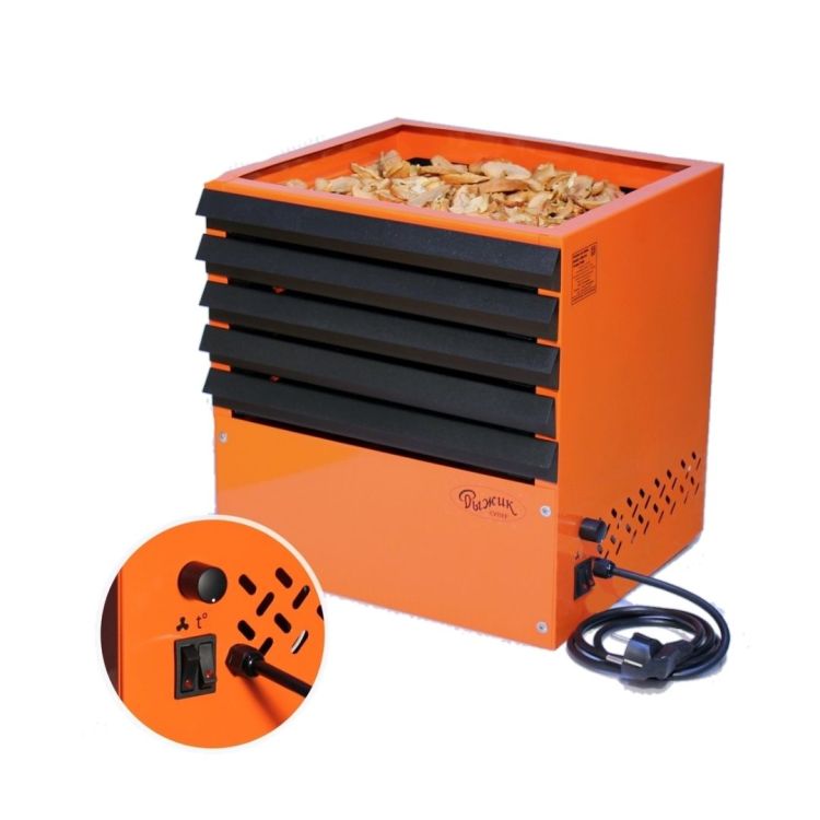 В основе конструкции сушилки для грибов вентилятор, дополненный керамическим нагревательным блоком мощностью 750 Ватт*.